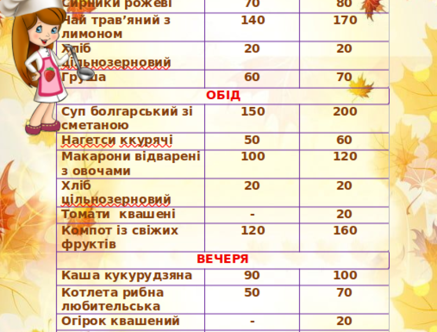 Норми продуктів харчування на дитину